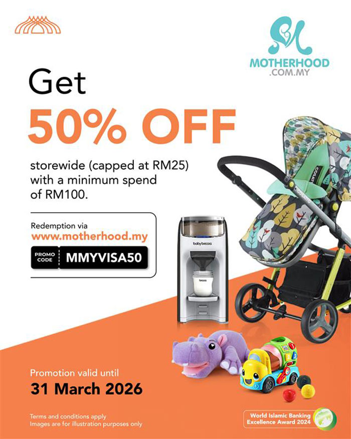 Hey super parents! Save more on everything your little one needs. Enjoy 50% OFF (up to RM25) when you spend RM100 using your Credit Card-i. Stock up on baby must-haves and treat the whole family to a little extra love!