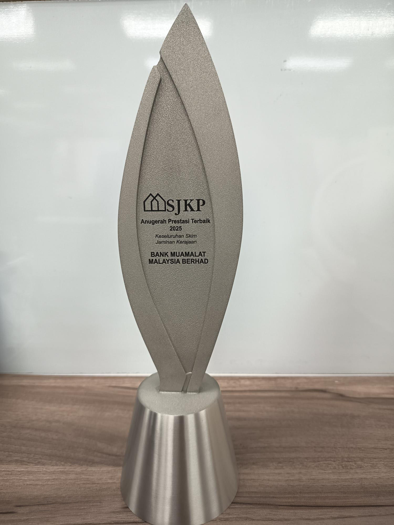 “Anugerah Prestasi Terbaik 2025 – Keseluruhan Skim Jaminan Kerajaan SJKP” merujuk kepada pengiktirafan prestasi cemerlang yang telah dicapai oleh Bank Muamalat Malaysia Berhad (BMMB) dalam mempromosikan Skim Jaminan Kredit Perumahan di bawah kategori Institusi-Institusi Kewangan sepanjang tahun 2025. Sejak tahun 2020, BMMB telah memainkan peranan penting dalam membantu pemilik rumah pertama, mengukuhkan komitmennya terhadap keterangkuman kewangan, dan menyokong agenda nasional pemilikan rumah mampu milik.