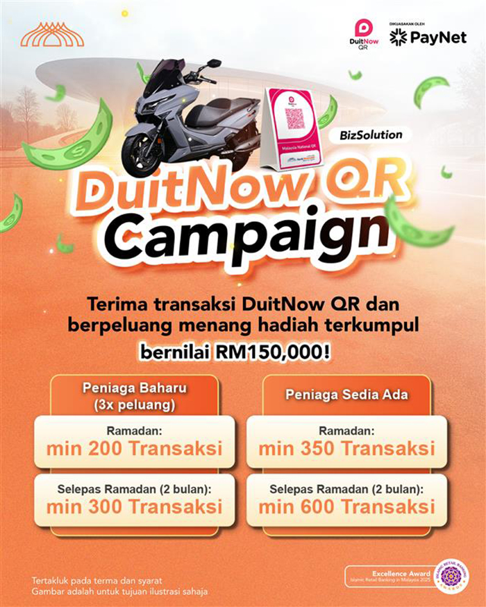 This campaign is introduced to support the implementation of the Muamalat Mesra Masjid 2.0 program, and to encourage the adoption of digital transactions among Mosque and Surau accountholder, particularly during the period from Ramadan until Hari Raya Aidiladha.