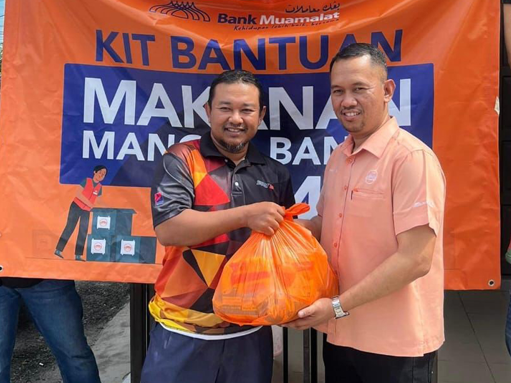 Selangor, 27 September 2024: Bank Muamalat Malaysia Berhad (Bank Muamalat) menghulurkan kit bantuan makanan kepada komuniti yang terjejas akibat bencana banjir di Kampung Jalan Kebun Selangor.