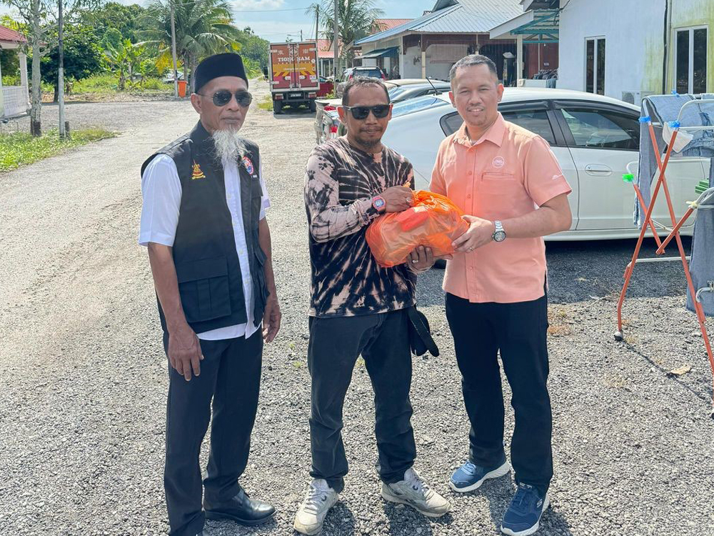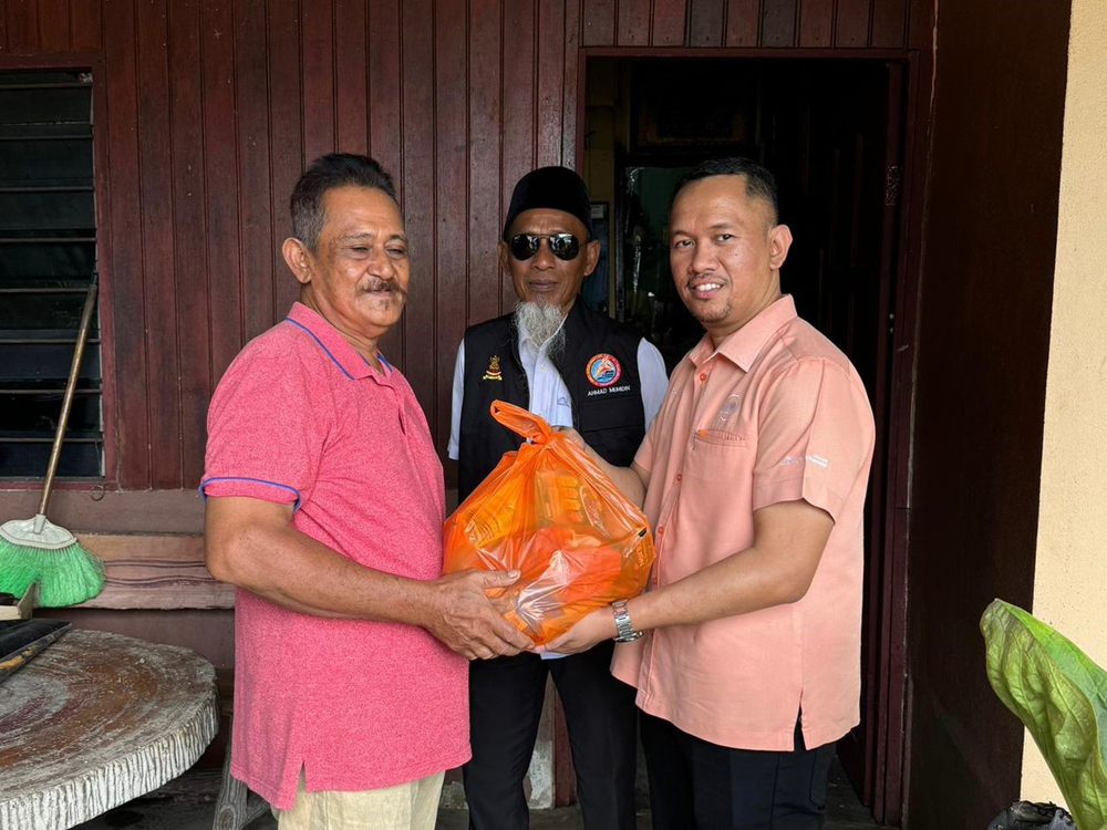 Bantuan bagi 60 keluarga diserahkan oleh Pengurus Perniagaan Wilayah Tengah Bank Muamalat, En. Mohd Habib Mat Daud dan Ketua Kampung, Tok Din serta JPKK kepada sekitar penduduk Kampung Jalan Kebun.