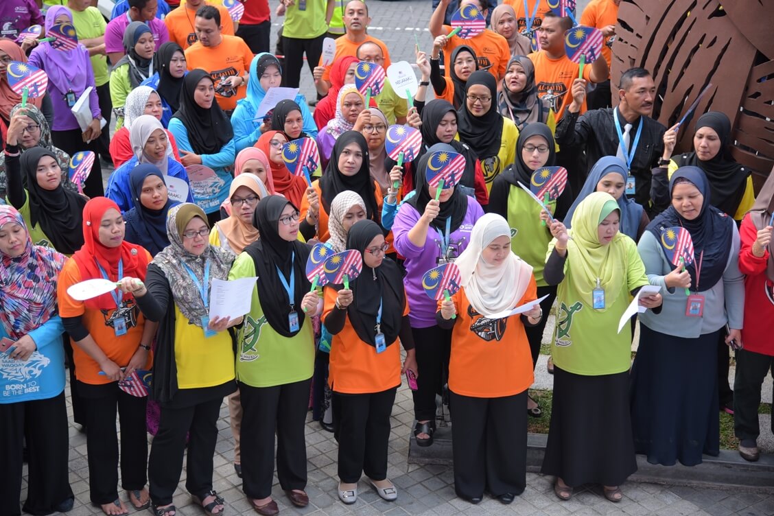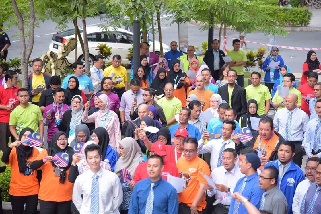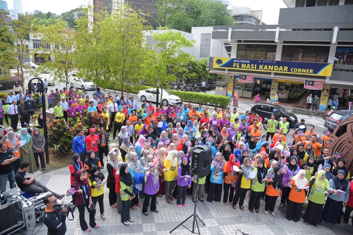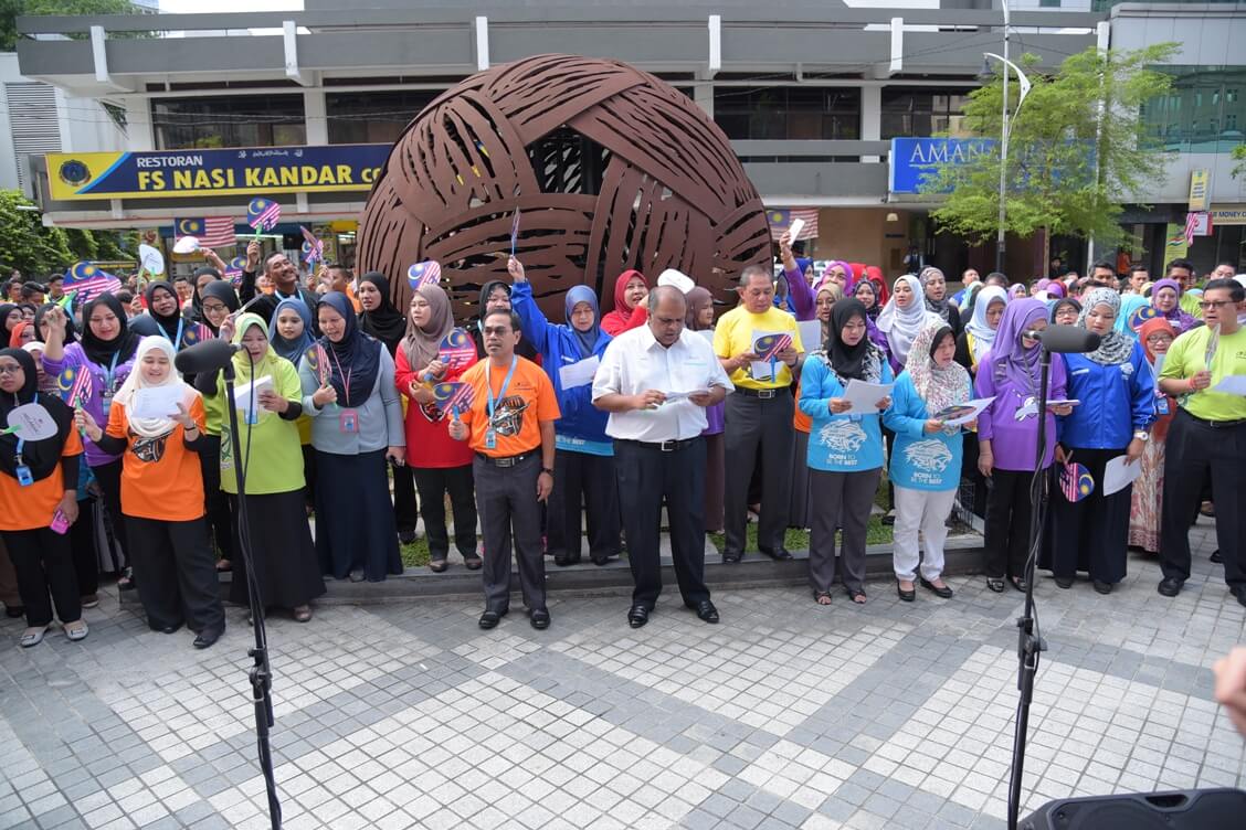 ‘Negaraku Sehati Sejiwa’ dipilih sebagai tema Hari Kebangsaan serta Hari Malaysia tahun ini yang akan diadakan di Kota Kinabalu pada 16 September 2017. Aturcara bermula dari jam 10.00 pagi dimulakan dengan perarakan jalur gemilang (Bendera Malaysia) bersama-sama dengan Y.Bhg Dato’ Haji Redza Shah Abdul Wahid, Ketua Pegawai Eksekutif Bank Muamalat Malaysia Berhad, bacaan doa, persembahan Koir lagu Negaraku seramai 20 orang kakitangan yang terlibat serta lagu Jalur Gemilang bagi membangkitkan semangat sempena hari kemerdekaan selang beberapa hari lagi.