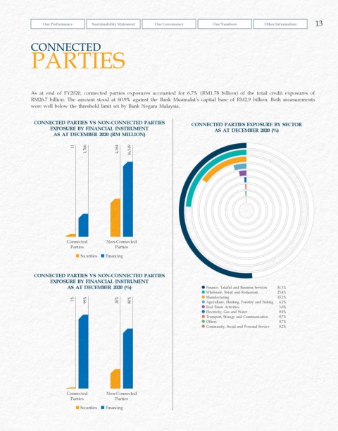 As at end of FY2020, connected parties exposures accounted for 6.7% (RM1.78 billion) of the total credit exposures of