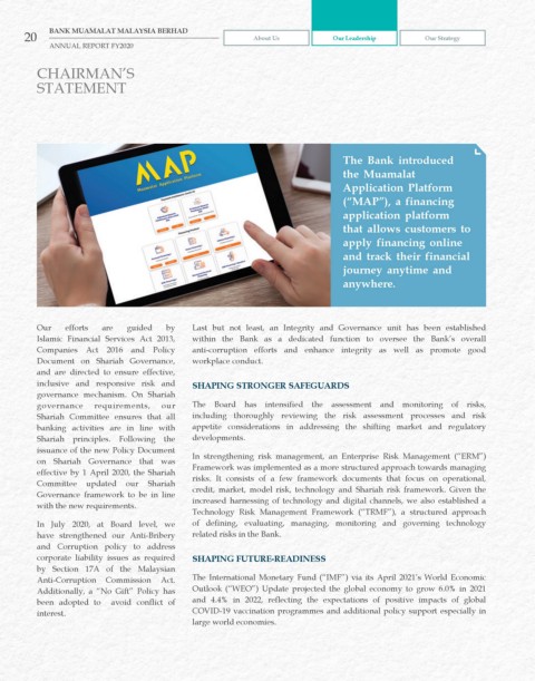 20 BANK MUAMALAT MALAYSIA BERHAD About Us Our Leadership Our Strategy