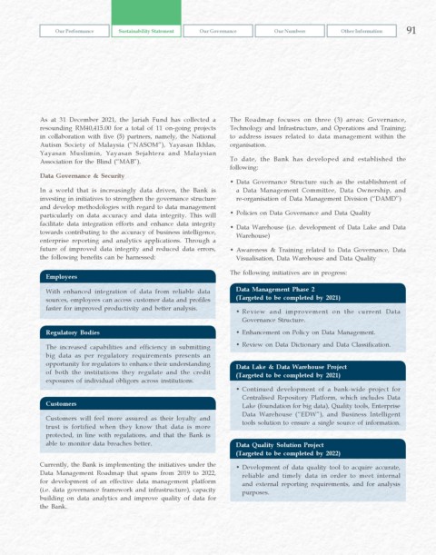As at 31 December 2021, the Jariah Fund has collected a The Roadmap focuses on three (3) areas; Governance,