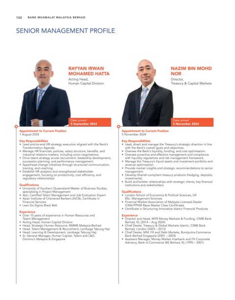 • Head, Strategic Human Resource, BMMB Malaysia Berhad • Chief Dealer, Treasury & Global Markets Islamic, CIMB Bank