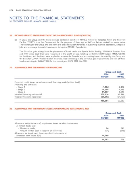(a) In 2023, the Group and the Bank received additional tranche of RM15.0 million for Targeted Relief and Recovery