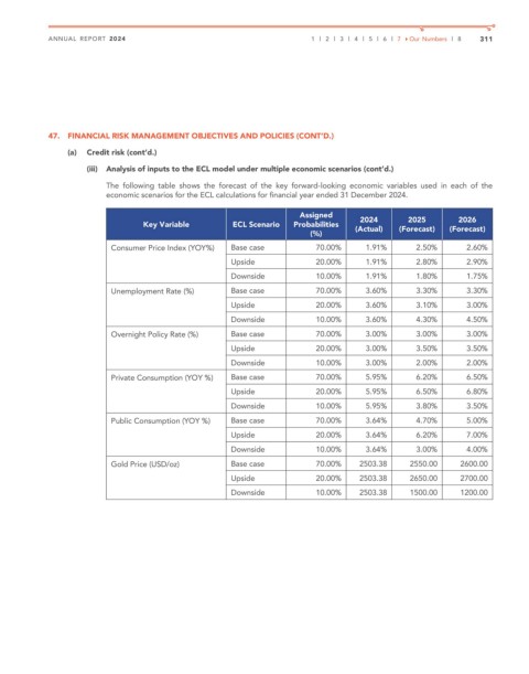 economic scenarios for the ECL calculations for financial year ended 31 December 2024.