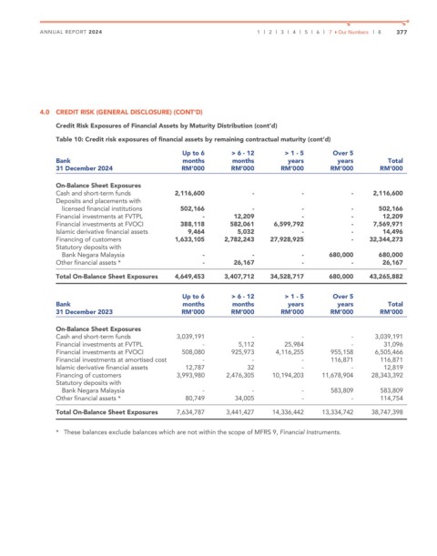 Table 10: Credit risk exposures of financial assets by remaining contractual maturity (cont’d)