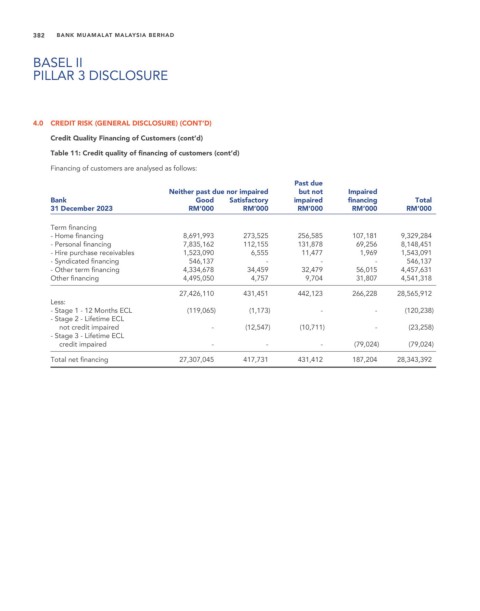 Table 11: Credit quality of financing of customers (cont’d)
