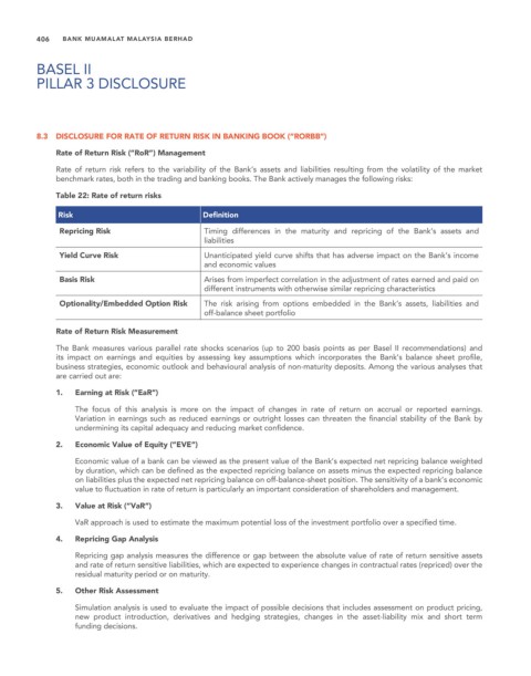 8.3 DISCLOSURE FOR RATE OF RETURN RISK IN BANKING BOOK (“RORBB”)