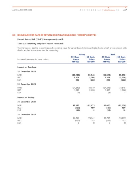 8.3 DISCLOSURE FOR RATE OF RETURN RISK IN BANKING BOOK (“RORBB”) (CONT’D)