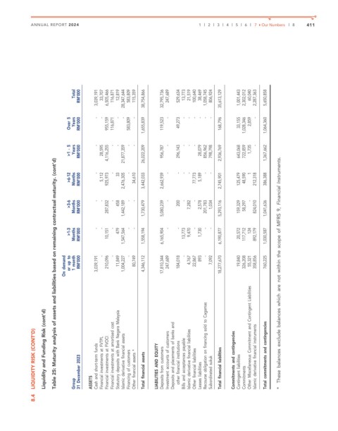 LIQUIDITY RISK (CONT’D) Liquidity and Funding Risk (cont’d)  31 December 2023   Cash and short-term funds   Financial investments at FVTPL  Financial investments at FVOCI   Financial investments at amortised cost   Statutory deposits with Bank Negara Malaysia   Islamic derivative financial assets   Financing of customers   Other financial assets *    Total financial  assets     LIABILITIES AND EQUITY  Deposits from customers   Investment accounts of customers   Deposits and pla