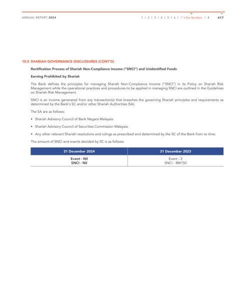 The Bank defines the principles for managing Shariah Non-Compliance Income (“SNCI”) in its Policy on Shariah Risk