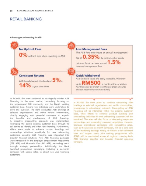 customers, ensuring ASB financing was integrated into ASNB will be conducted across all regions, covering both
