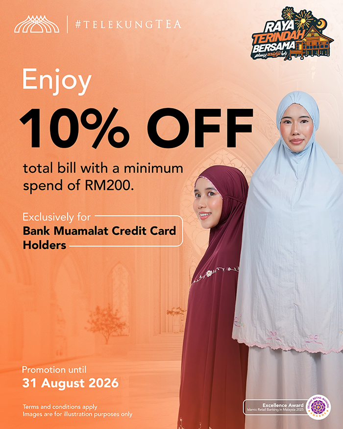 Elevate your prayer essentials with Telekung designed for comfort & modesty. Enjoy 10% OFF your Telekung purchase with a minimum spend of RM200 using your Credit Card i.