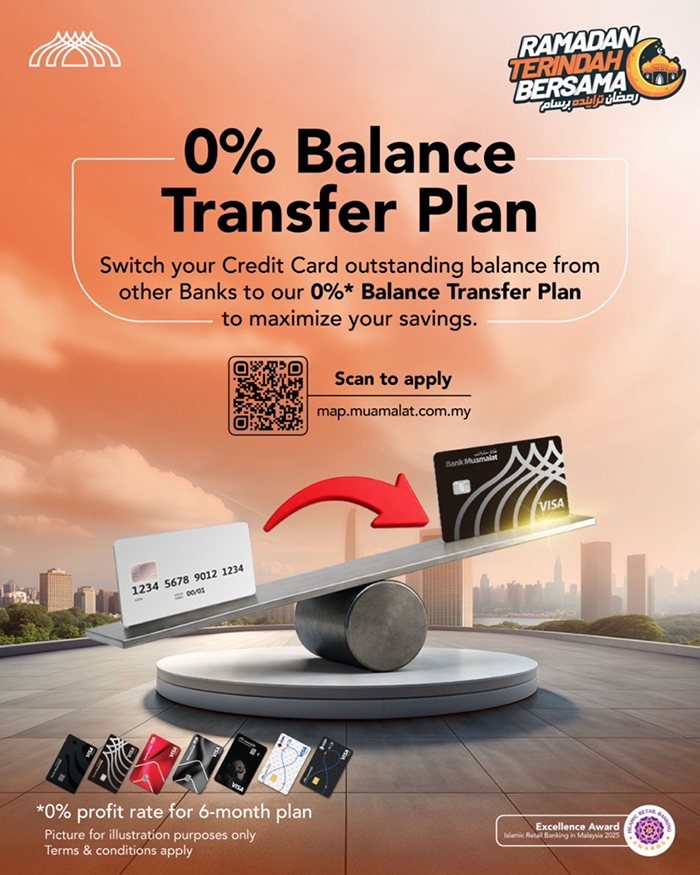 Switch your Credit Card outstanding balance from other Banks to our 0%* Balance Transfer Plan to maximize your savings.