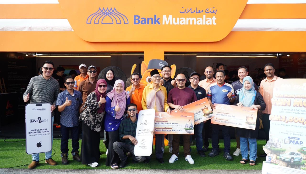 Kuala Lumpur, 10 November 2025 - Bank Muamalat Malaysia Berhad (Bank Muamalat) mengumumkan pemenang-pemenang bagi kempen Save2Win dalam satu majlis penyampaian hadiah yang diadakan bersempena Karnival Jom Heboh Pulau Pinang.