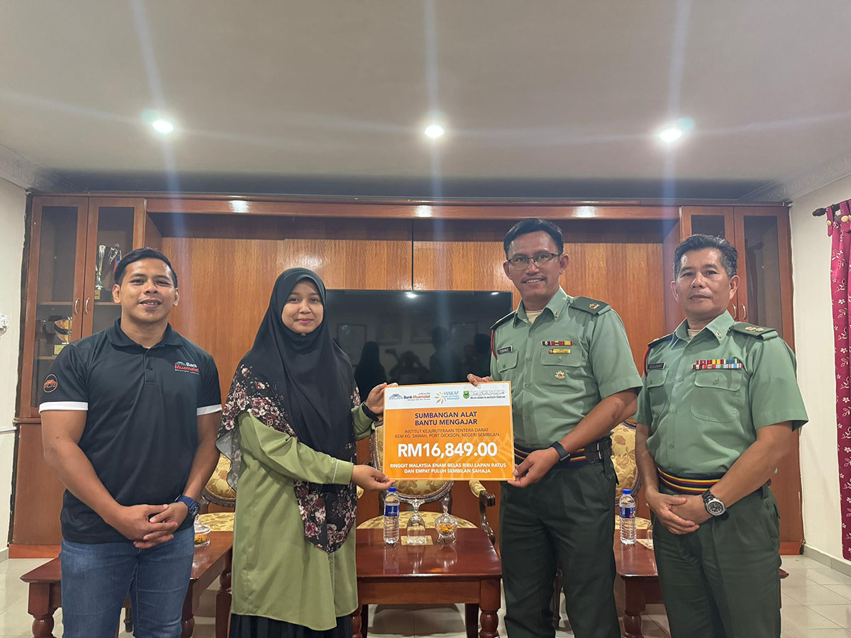 10 September 2025 | Bank Muamalat Malaysia Berhad (BMMB) dengan penuh rasa keprihatinan telah menyerahkan sumbangan Alat Bantu Mengajar bernilai RM16,849.00 kepada Institut Kejuruteraan Tentera Darat melalui inisiatif Wakaf Negeri Sembilan Muamalat.