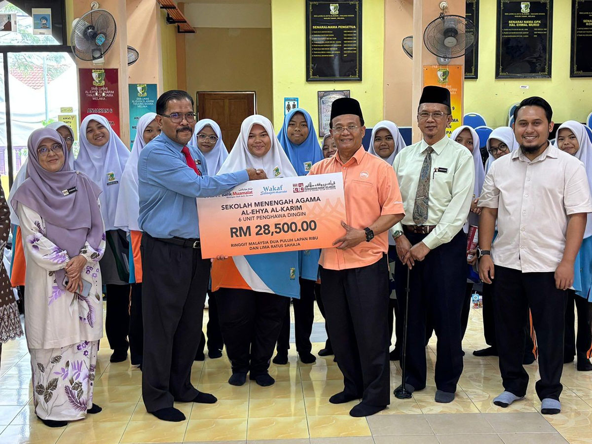 8 Disember 2025 | SMA Al-Ehya Al-Karim, Kampung Tanjung Bidara, Masjid Tanah, Melaka. Bank Muamalat Malaysia Berhad (BMMB) melalui inisiatif Wakaf Selangor Muamalat (WSM) hari ini menyerahkan sumbangan Wakaf enam (6) unit penghawa dingin kepada SMA Al-Ehya Al-Karim sebagai usaha meningkatkan kemudahan pembelajaran sekolah.